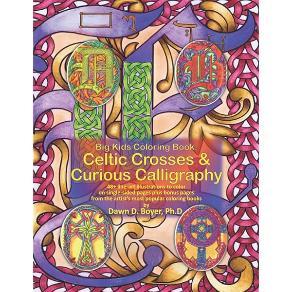 Big Kids Coloring Book Celtic Crosses Curious Calligraphy 48 Line Art Illustrations To Color On Single Sided Pages Plus Bonus Pages From The Artist S Most Popular Coloring Books Boyer Ph D Dawn D 9781090624918